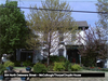 Description: Contributing two-story wood-frame dwelling; irregular shape; intersecting gabled roof with composition shingles, boxed eaves at gable ends; stucco exterior; six-over-six double-hung sash windows; small porch with square columns and balustrade above roof on façade; large porch with square columns and balustrade atop roof on south side. Slightly elevated lot with concrete retaining wall along south sidewalk; lawn and shrubbery along foundation; mature shade trees.