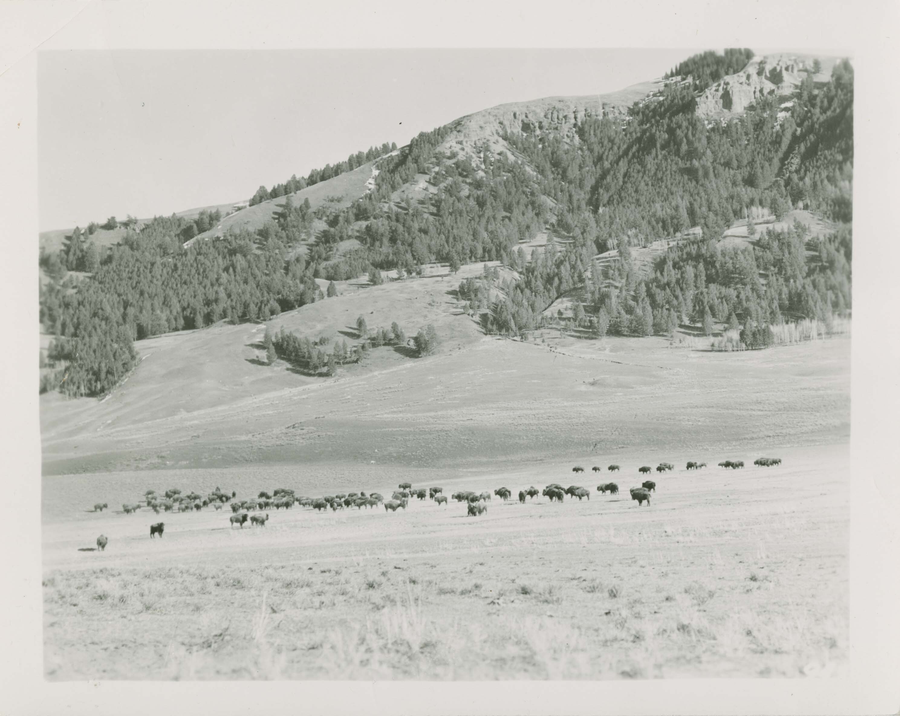 Buffalo [Bison] on Summer Range, Lamar Valley, Childs. Locality: Yellowstone National Park. Negative #: 9431. Location of Negative: Yellowstone National Park. [This information comes from the reverse of the envelope for this negative number.]