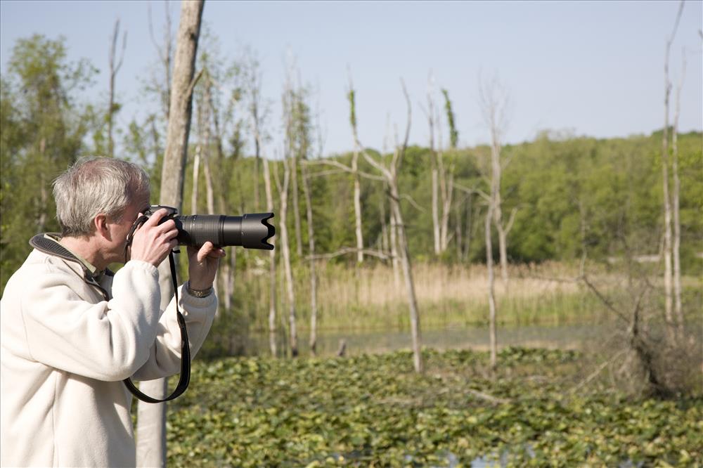 A visitor takes nature photographs at the Beaver Marsh, a site along the Towpath Trail. || Nature photography is a popular activity in Cuyahoga Valley National Park. Cuyahoga Valley Photographic Society promotes CVNP through the photographic arts by providing educational opportunities such as workshops, presentations, photo walks, and an annual photo contest. For more information contact info@cvps.org.