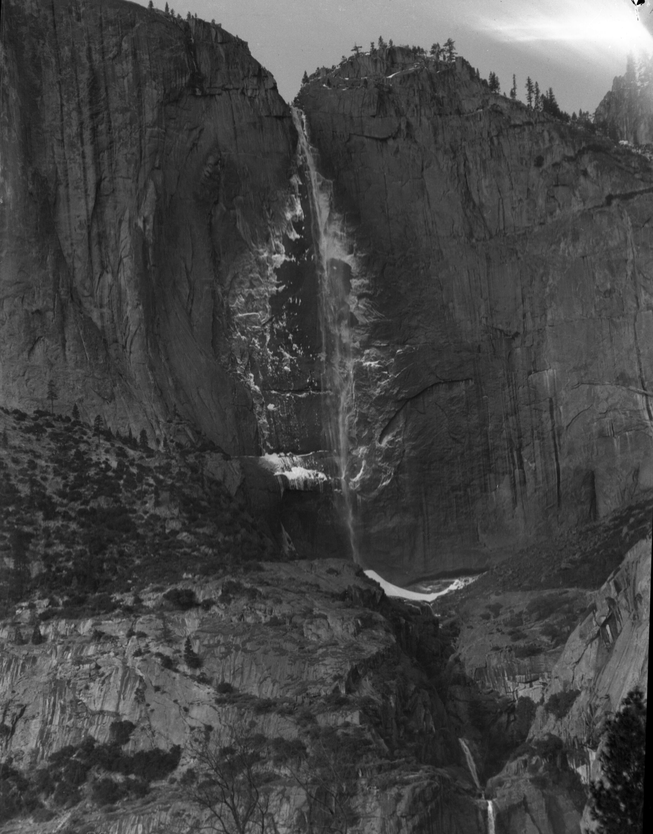 Cloesup of Yosemite Falls Ice Cone showing Bill Kat in spray.