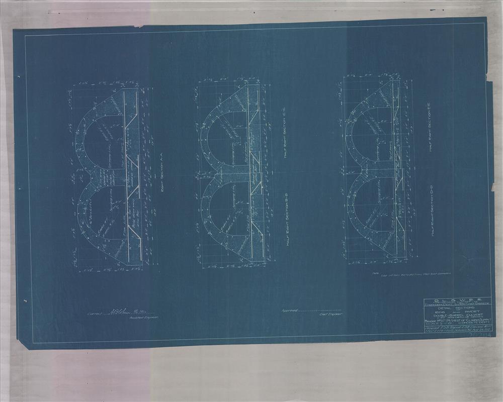 Double barrel culvert 2-8-0 semi-circular arches bridge no. 1.17--Detail sections of ring and invert--1 mile west of Clarks Summit, PA [1912.08.26] Sheet no. 2 of 4