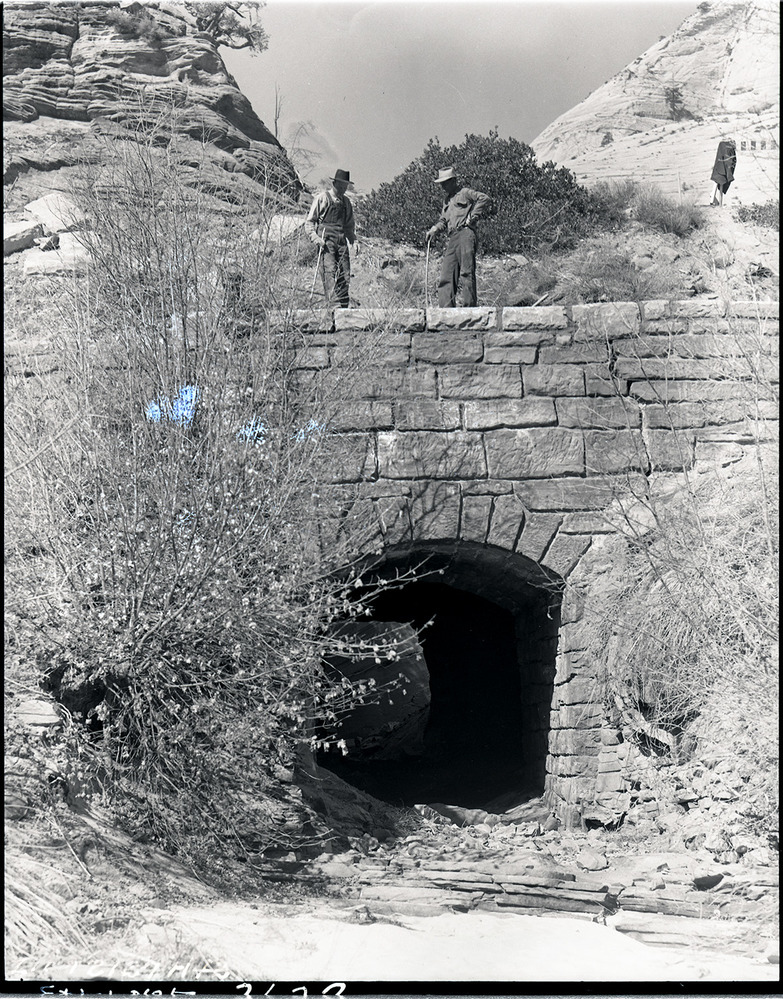Sunken guard wall below tunnel. ; ZION Museum and Archives Image 002_02035 ; ZION 9461