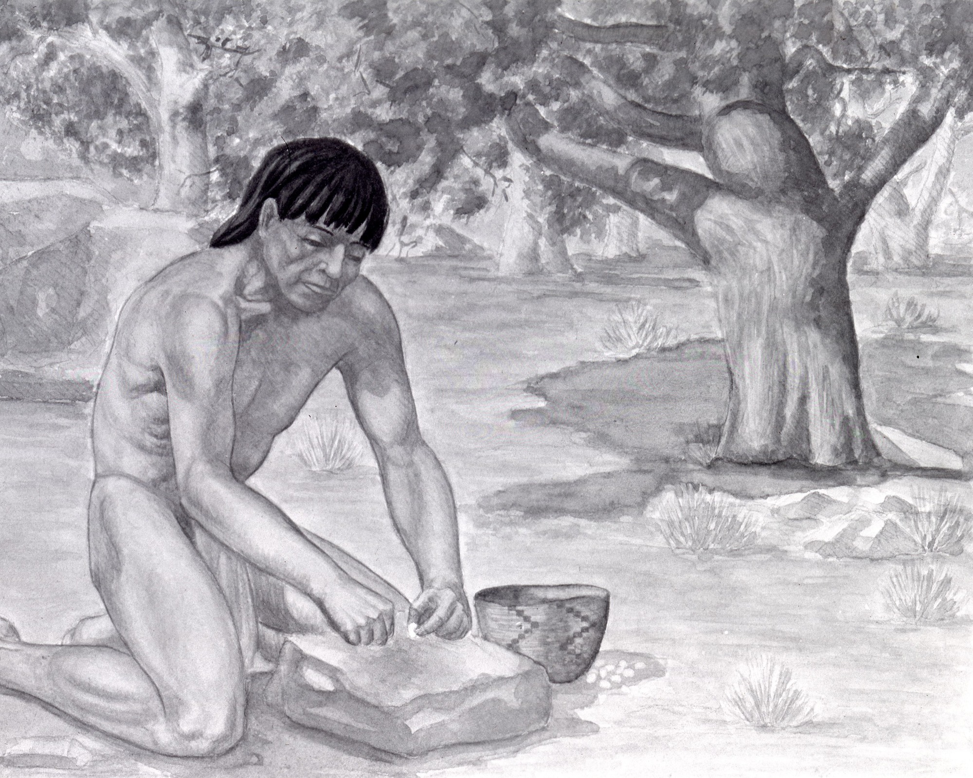 Native Americans quarrying obsidian at Mono Lake craters. Copy of painting by Anderson.