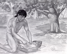 Sifting ashes from baked olive sea shells. Copy of a drawing.