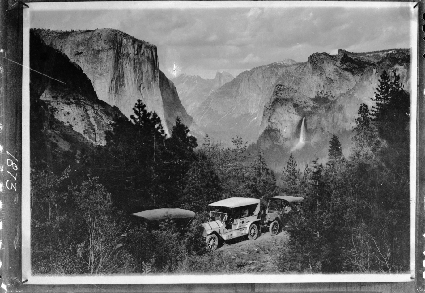 Car on turn above Wawona Tree on way to Wawona Point. Ralph H. Anderson (PWA)