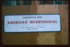 Park Service sign on wood construction fence. "Preparing For America's Bicentennial".