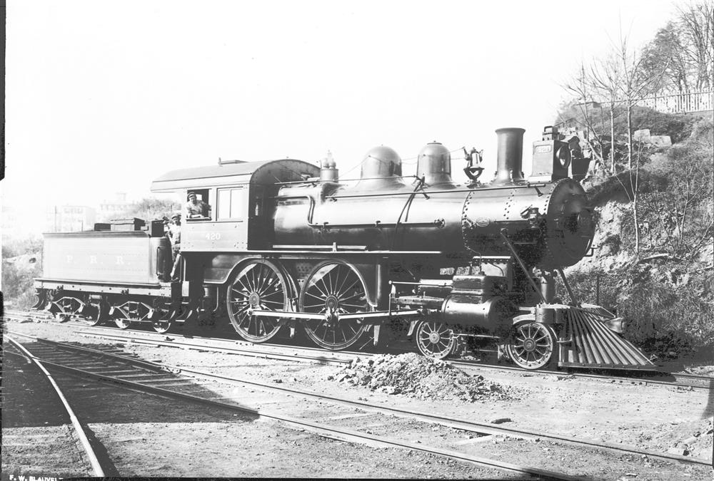 Negative #1885--Pennsylvania no. 00420 [4-4-0] Photo taken at NJ--Jersey City--Juniata no. 351--Built 1895.06--Note: Goodyear