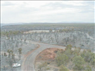 Aerial views of Chapin Mesa area in and around buildings depicting burn areas in the aftermath of the Long Mesa Fire at Mesa Verde National Park, August 2002