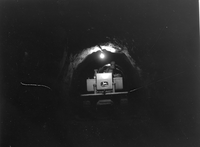 A compact John Deere tractor was used to grade and transport material through the tunnel