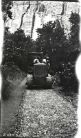 Narrows Trail construction, station 12-00, horsed-pulled roller. ; ZION Museum and Archives Image 008_03_050 ; ZION 13587