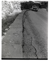 Crack in road in need of repair along the Zion-Mt. Carmel Highway switchbacks. ; ZION Museum and Archives Image 002.02.04-1of4 ; ZION 15933