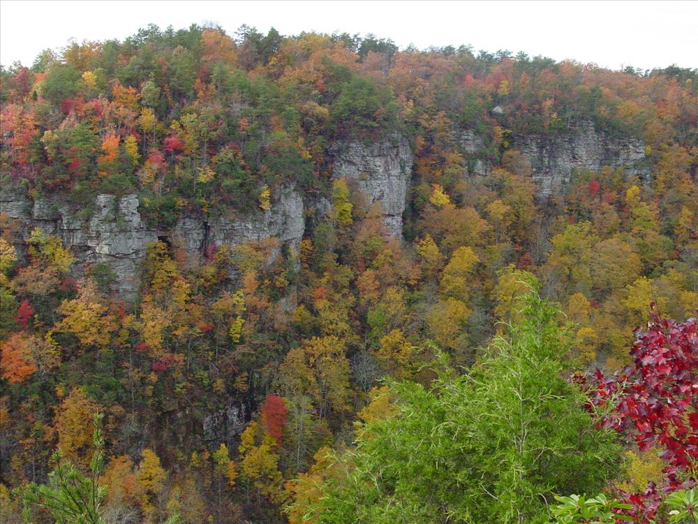 Crow Point Overlook view across Bear Creek with fall leaves near peak taken with NPS camera on November 11, 2002.