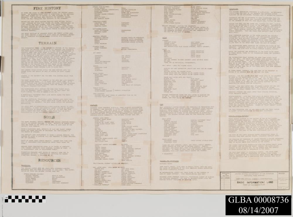 Master Plan for Preservation and Use of Glacier Bay National Monument. 18 pages including maps and text with blue and red ink corrections.