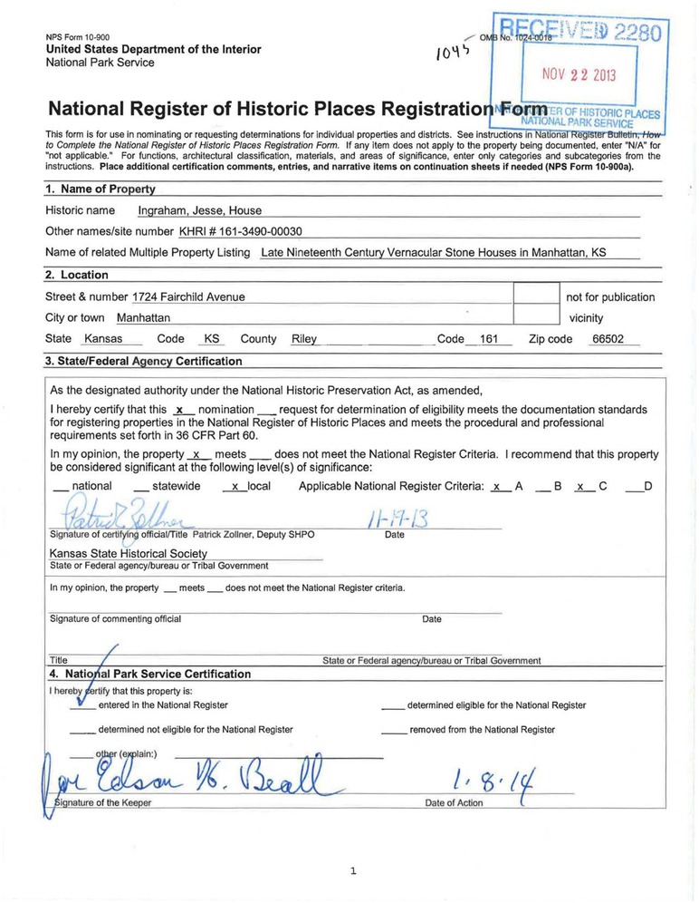 Late 19th Century Vernacular Stone Houses in Manhattan, Kansas MPS