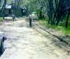 Construction vehicles during the utilities project at Zion Lodge. ; ZION Museum and Archives Image 006.04.12-69of124 ; ZION 15933