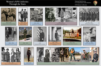 Poster featuring photographs arranged in chronological order demonstrating the evolution of uniforms worn by women in the NPS.