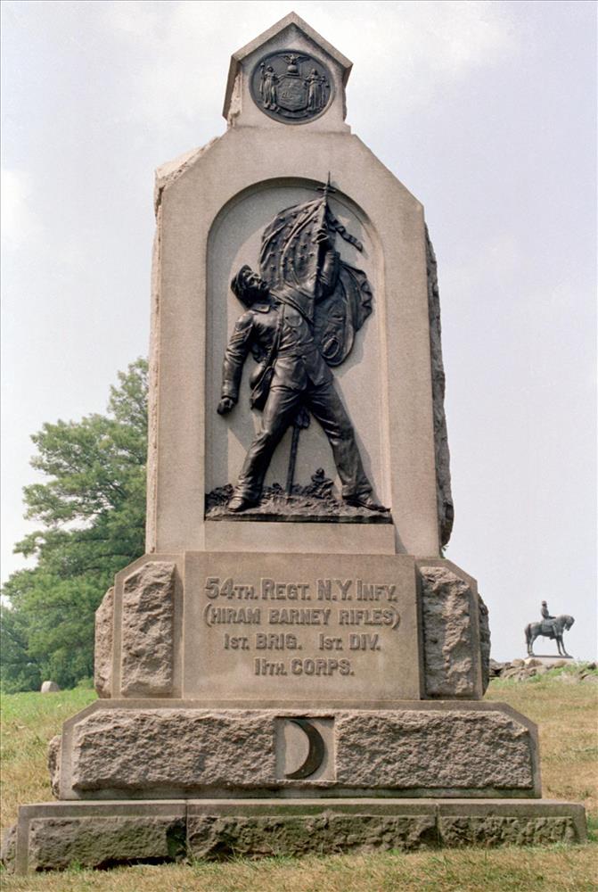 1 of 90 mns in Park honoring NY commands in the Gettysburg Campaign. Marks position held by the regiment on July 2 & 3. The marker, located W of Rock Creek, indicates position held on July 1. Mn is located near Wainwright Av, below East Cemetery Hill