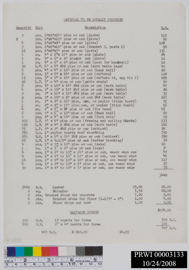 SHELTER, CRAFT. CAMP 3. JOB #270.<CRCAMP 3. INCLUDES JUSTIFICATION, SPECIFICATIONS. JOB APPLICATION & COMPLETION RECORD. MAN D<CRREVISIONS. MATERIALS LOCALLY PRODUCED AND PURCHASED. DISCRIPTION AND COST. MATERIALS FROM<CRFROM OTHER SOURCES.<CR#, THRU , SAME FILE FOLDER. CAMP 3. CORRESPONDENCE. REDUCTION OF CONTOUR LOCATION MAP.<CRSTAPLES, RUST, CARBON TRANSFER. YELLOW PAPER. TORN.