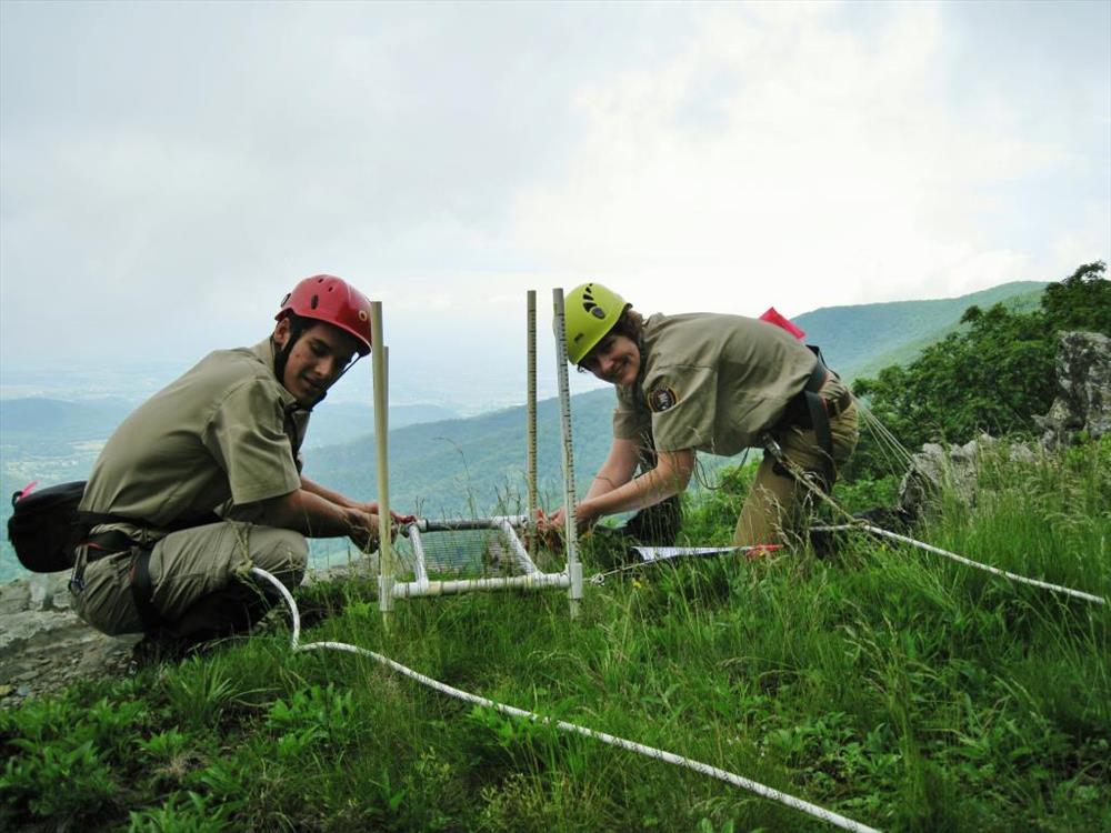 These images show field work associated with a project to monitor the effects of climate change on high elevation rare plant species in Shenandoah National Park. Permanent photo monitoring plots were located on pristine rock outcrop areas away from visitor impacts. Images taken in 2010 were repeated in 2014.