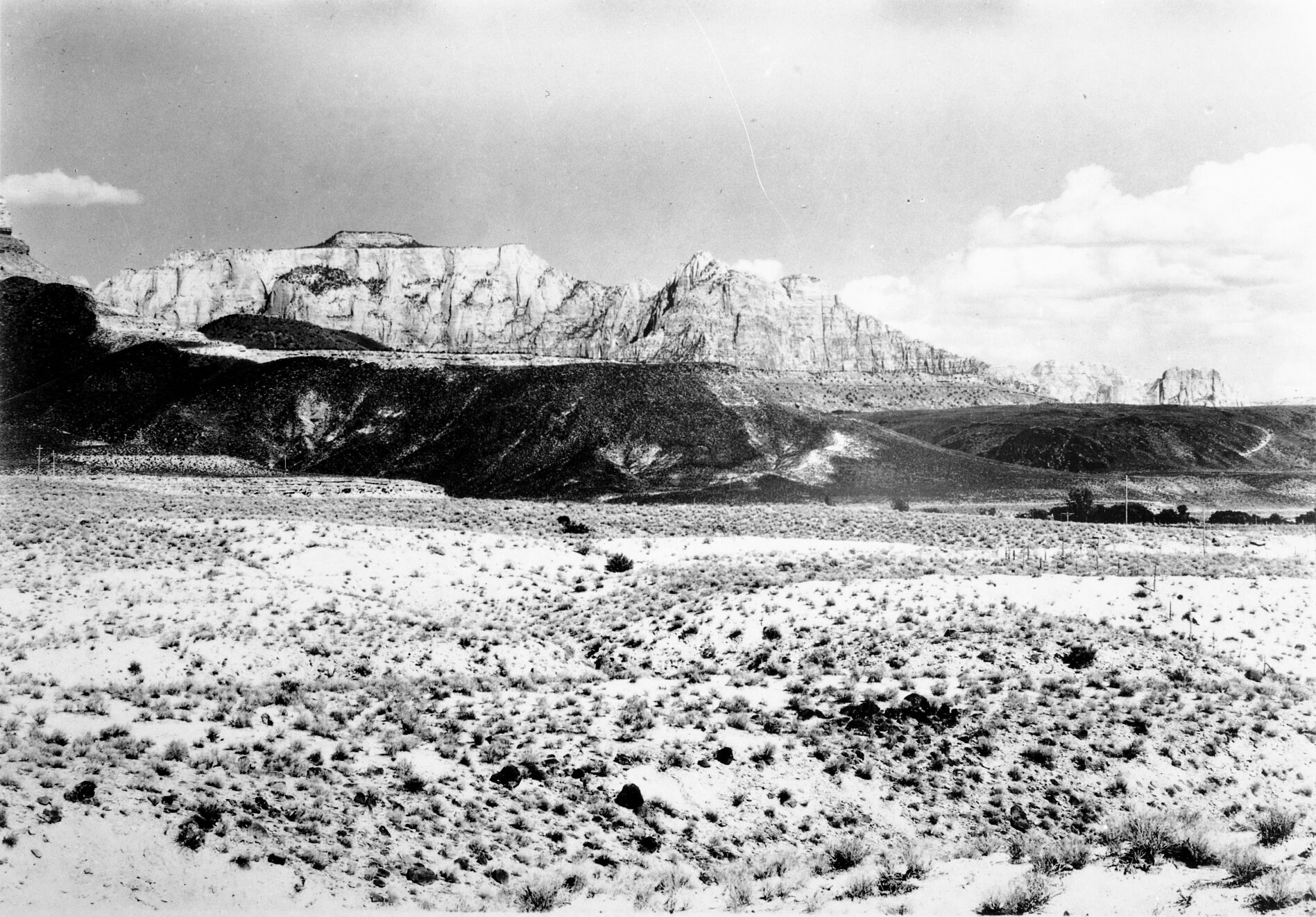 West Temple, taken from below Springdale, Utah. ; ZION Museum and Archives Image 13272 ; ZION 13272