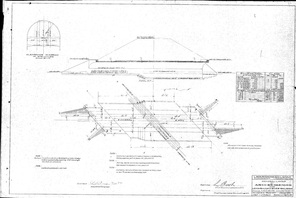Arch bridge no. 9.04 over Lehigh and Hudson River Railroad--General layout--Huntsville, NJ [1908.09.11] Sheet no. 1 of 5