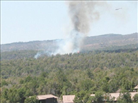 Photos of white smoke indicating start of the fire on the first day of Long Mesa Fire, Mesa Verde National Park, July 29, 2002