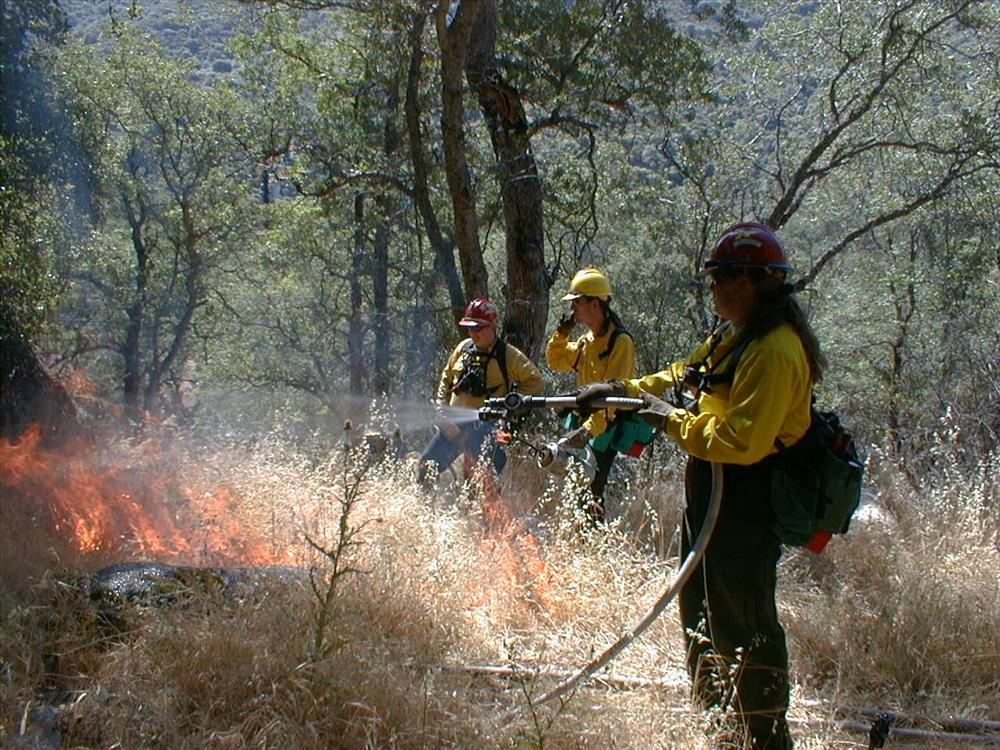 Prescribed burn using drip torch ignition at Ash Mountain Headquarters, Sequoia and Kings Canyon National Parks, May 2004