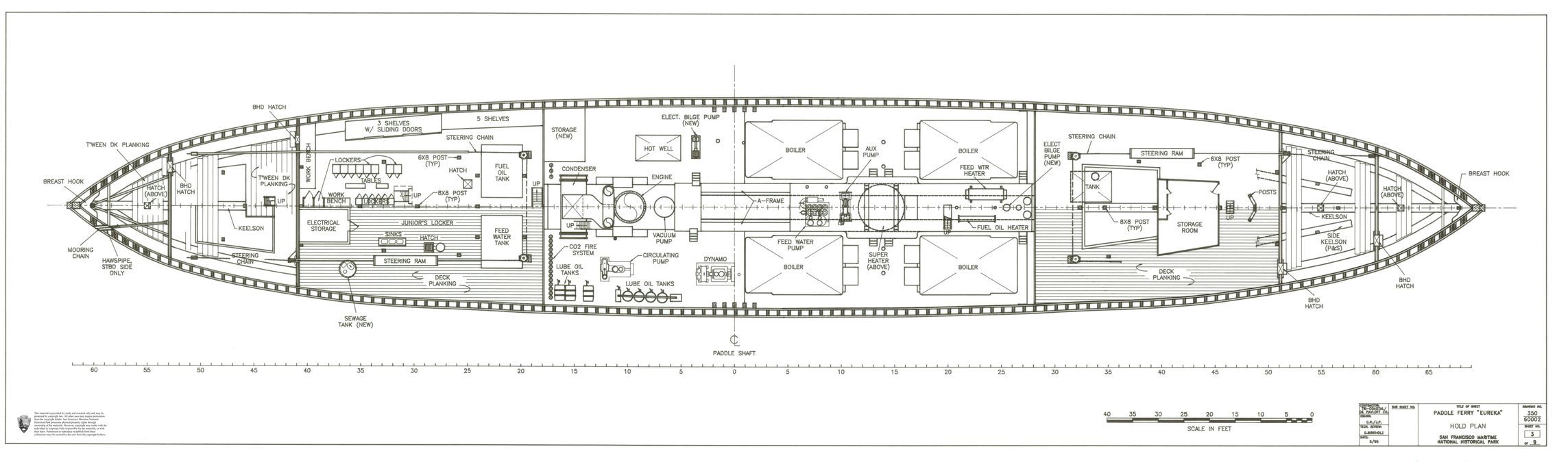 Plans package dated 1922-1996 for the 1890 side-wheel ferry Eureka.