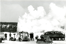 Tourists, concessioners, and government personnel alike used snow vehicles such as the snowcoaches pictured here to navigate the harsh and beautiful landscapes of Yellowstone in winter.