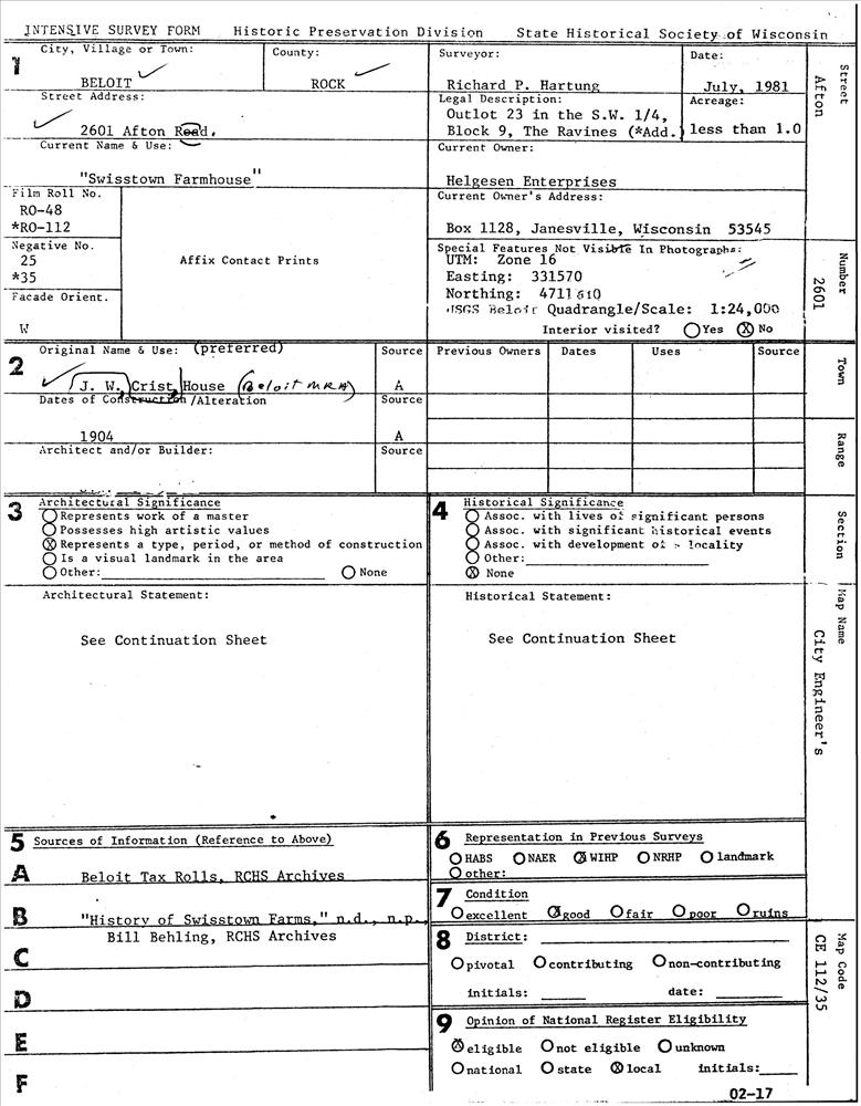 Beloit ; 2601 Afton Rd.