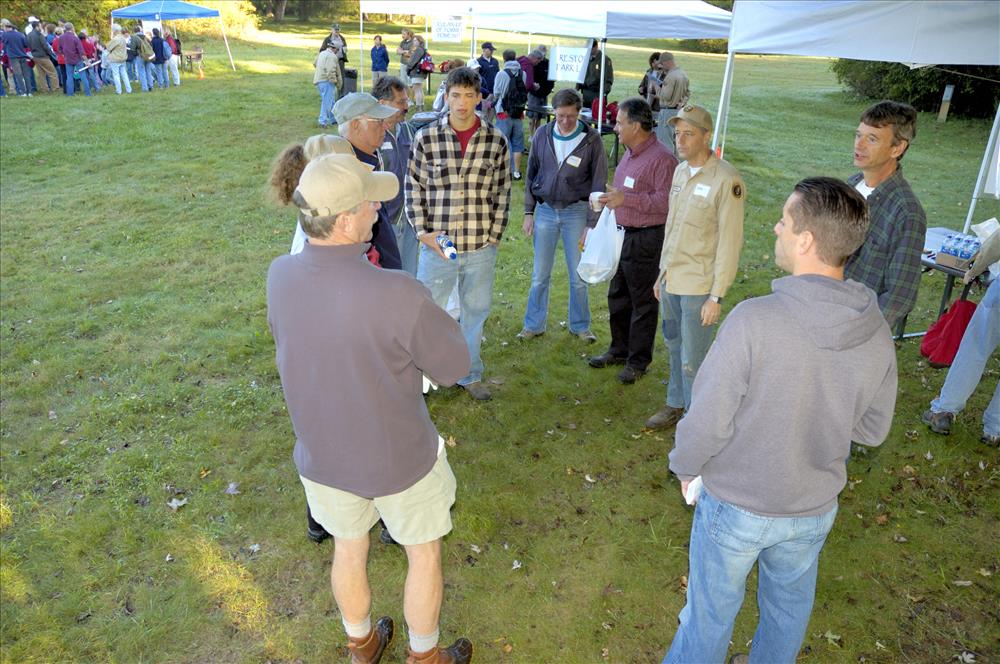 Volunteers register for National Public Lands Day 2007 at Howe Meadow. || The Adopt-a-Trail Program is an opportunity for people of all ages to assist the staff of Cuyahoga Valley National Park in maintaining safe and well-groomed trails by joining a group that takes responsibility for one trail. Volunteers help "sweep" the trail by picking up litter, trimming branches, clearing culverts, and reporting trail conditions. In 2007, over 110,000 volunteers across the country participated in the 14th annual National Public Lands Day, contributing over $12 million worth of labor in clean-up, trail repair, and planting.
