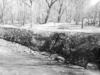 B&W negative of flood damage to Virgin River bank. ; ZION Museum and Archives Image ZION 8611 ; ZION 15933