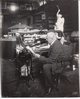 Thomas Edison with Ediphone at his desk in the library of Building 5.