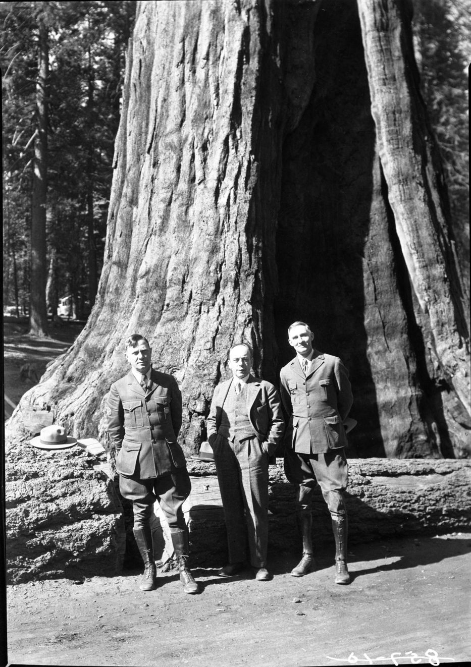 Unknown Photographer, Unknown Date, Giant Forest, SNP, Foreign Visitors, Ford Spiglemyre, Dr. Jack from Germany, Col. White at Sentinel Tree.
