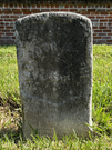 Front of historic upright marble headstone with recessed shield with recessed lettering face.