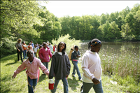 Girl scouts participate in a pond study at Cuyahoga Valley Environmental Education Center. || For many years, girl scout troops have participated in an overnight retreat at Cuyahoga Valley Environmental Education Center. Activities vary annually and help participants earn select badges. These photos were taken in May 2007.