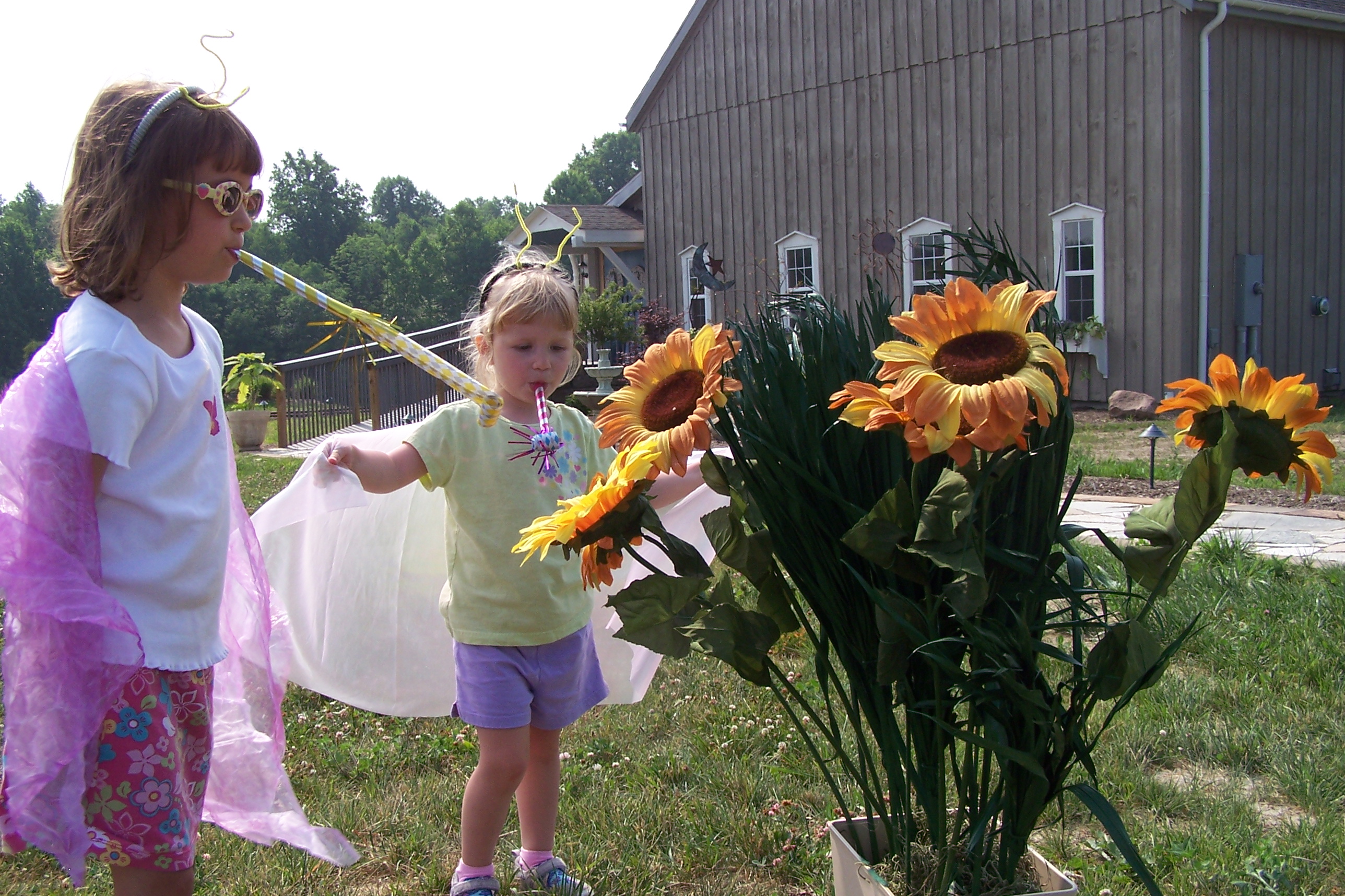 Junior Ranger, Jr. families participate in creative play with a park ranger at Sarah's Vineyard. This activity is part of the Butterfly's Breakfast program. Children ages 4-6 dress up as butterflies sipping nectar from flowers and emerging from coccoons. They also examine mealworms. || CVNP offers a variety of Junior Ranger programs to families and groups during the summer, and a limited menu to families throughout the year. In 2007 we had a Parks as Classrooms grant to develop pilot programs on working farms on park property. This program, Butterfly's Breaksfast, explores the lives of insects and their roles on farms.
