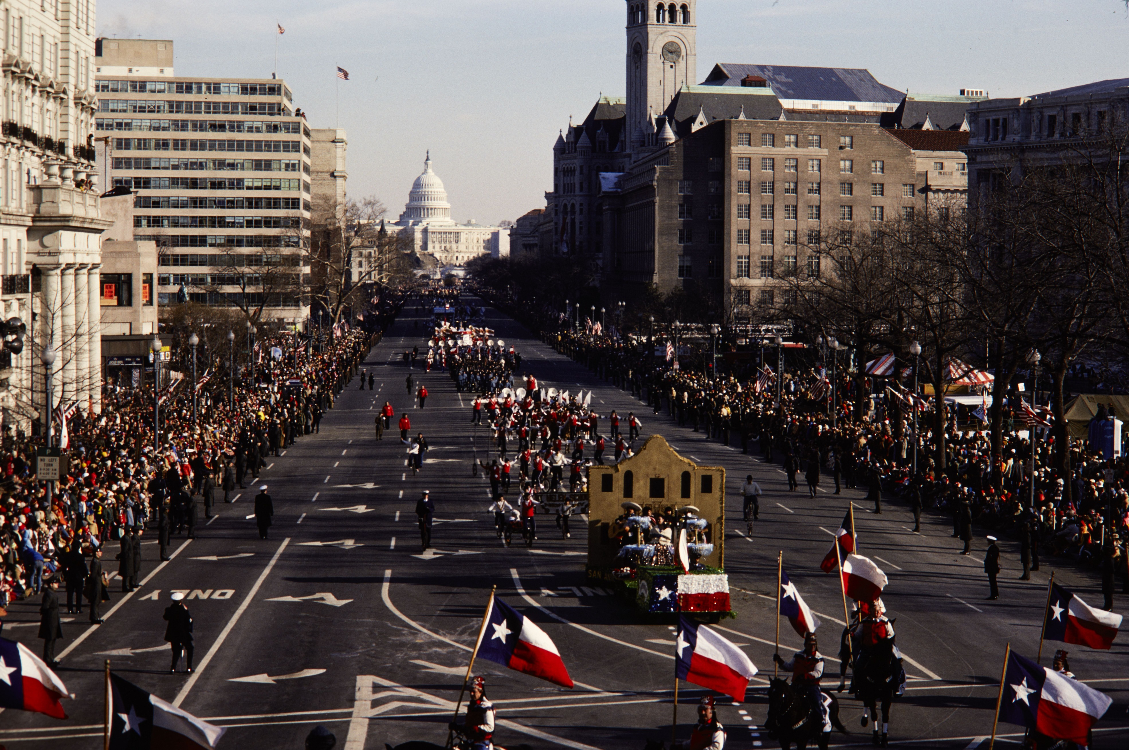 President Jimmy Carter's Inaugural Parade with the Texas float passing by on Pennsylvania Ave in Washington, D.C.