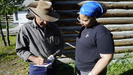 Instructor Al and TTAP member Aura discussing the measurements of the log ends.