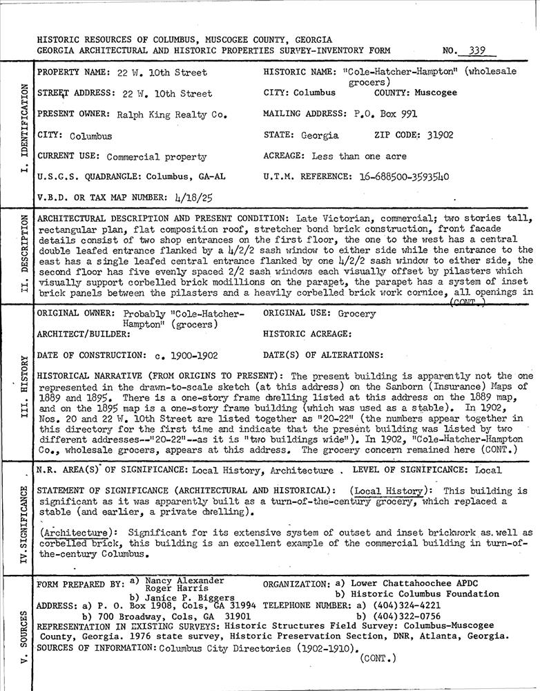 Columbus ; 22 W. 10 St.