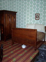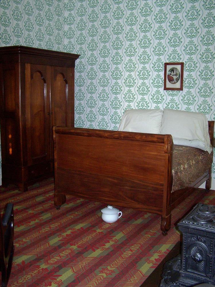 Images from the interior of the Lincoln Home. The wallpaper, carpeting, and draperies are reproductions of period patterns. Artifacts in the photos - furniture, dinnerware, knick-knacks, etc. - are largely period pieces, with only a handful of reproductions.