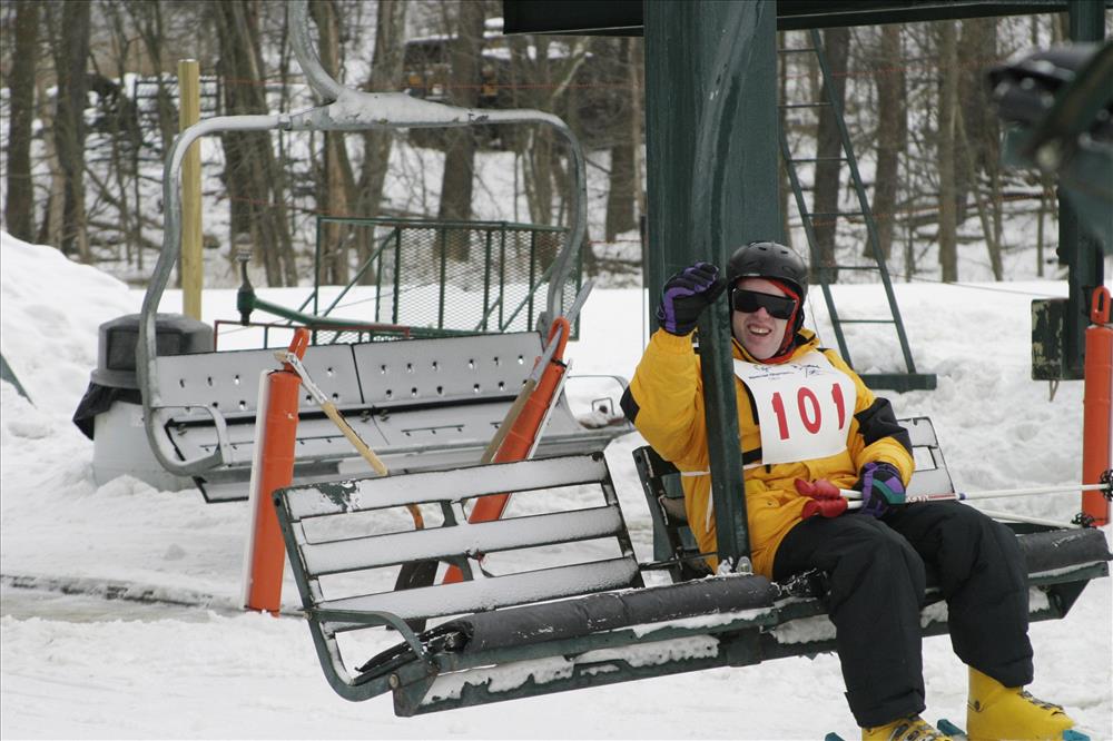 Athletes compete in downhill skiing events at Bradywine Ski Resort in Cuyahoga Valley National Park. These photos feature the athletes on the chairlift. || 2007 was the 25th anniversary of Cuyahoga Valley National Park and Special Olympics Ohio partnering to offer the Ohio Winter Special Olympics. Skiing events are held within the national park. Ice skating events are at Kent State Ice Arena. Special Olympics is an international organization dedicated to empowing individuals with intellectual disabilities to become productive, physically fit, and respected members of society through sports training and competition.