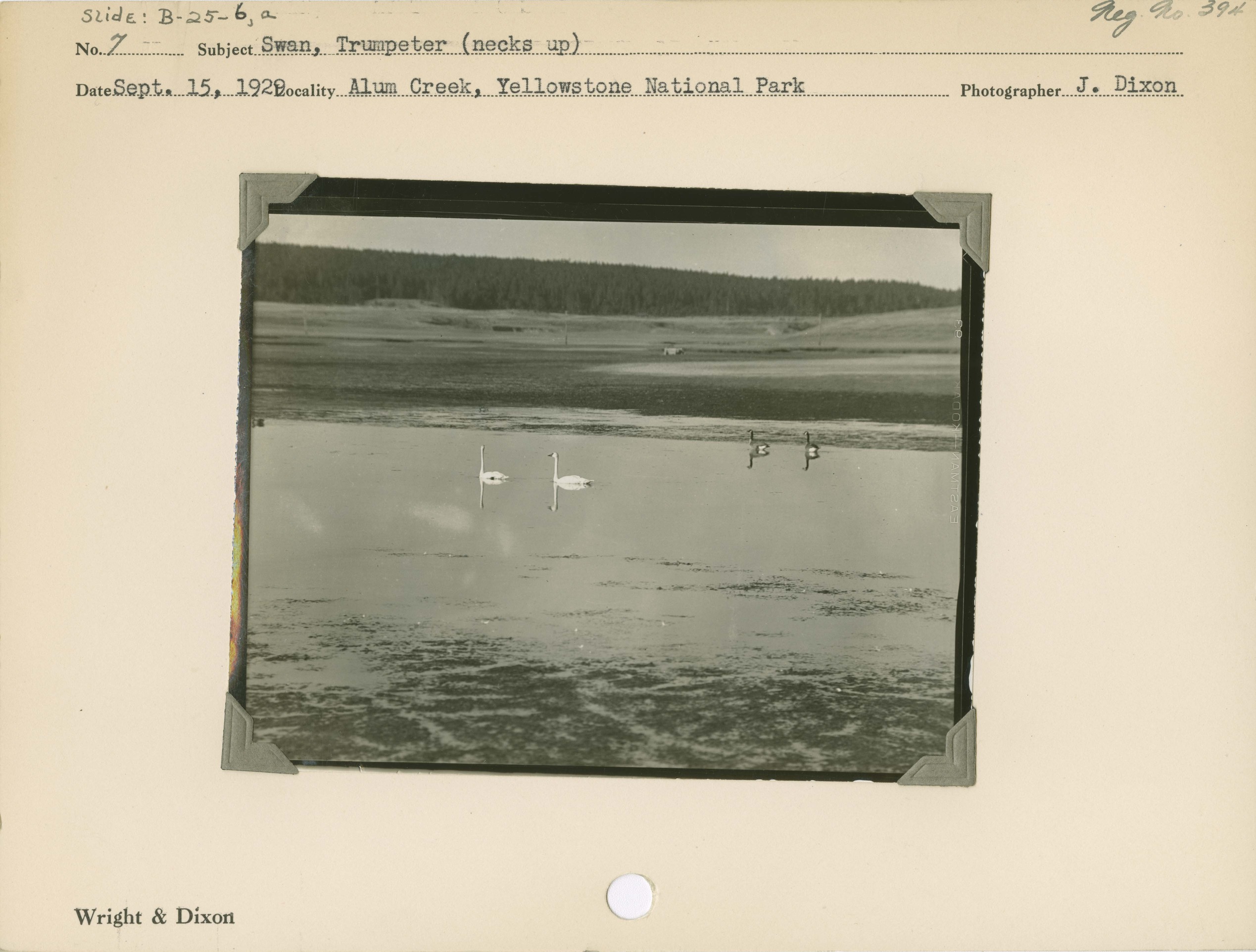Swan, Trumpeter (necks up). Locality: Alum Creek, Yellowstone National Park. Negative #: 394