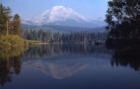 Dewey S. Weiss Historical Photograph Collection: Lassen Peak over Manzanita Lake at dusk