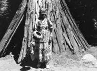 Ta-buce out gathering acorns and grass seeds, Ahwahnee Mdw. 1930's (?)