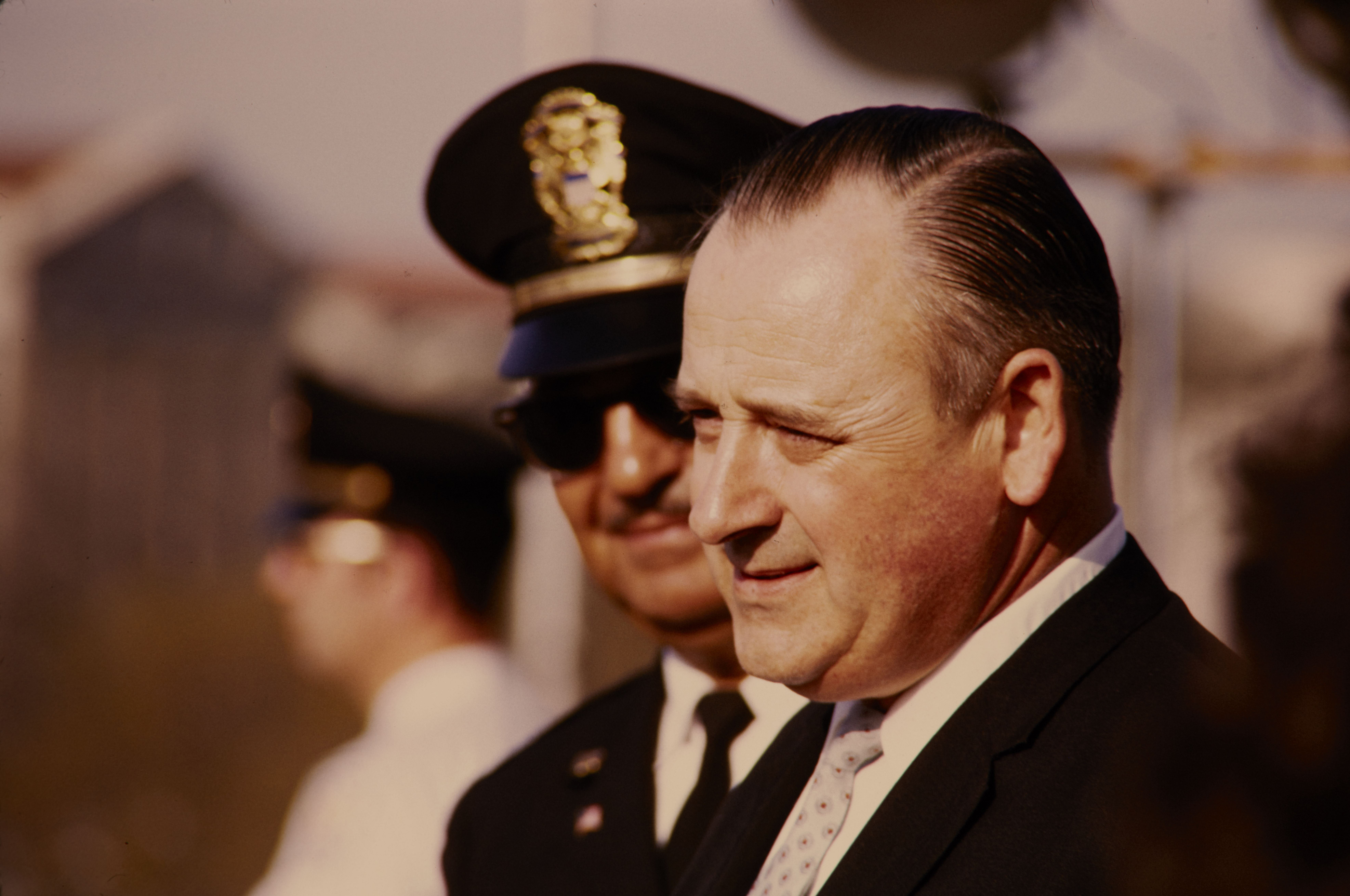 Demonstrations. NPS Director George Hartzog at the National Capital Region Earth Day flag ceremony at the Washington Monument.