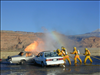 Firefighters fight vehicle fire involving two vehicles in simulation of a broadside collision during training at Mesa Verde National Park in 2001.
