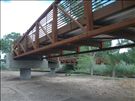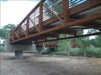Photos of the bridge connecting AZRU and downtown Aztec built by the city in 2014. Photos were taken on June 18, when bridge was not completely finished. Metal is COR 10, which is supposed to be covered by a thin layer of rust as a protectant.