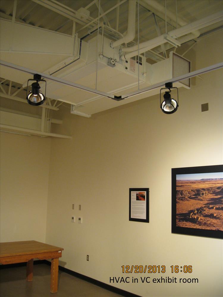 Photos show the visitor center's exhibit room, its air-conditioning system, and the VC lobby in December 2013