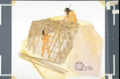 Artist's conceptual illustration of a scene depicts ancestral Puebloans constructing a pithouse.